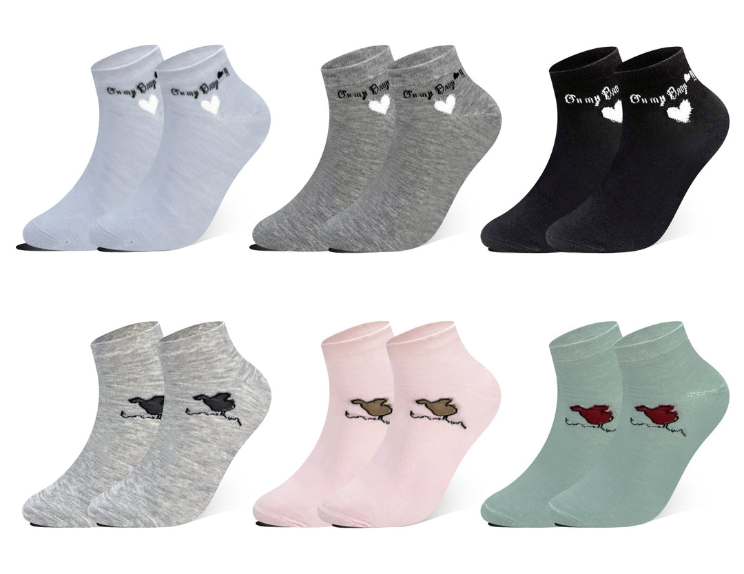 Women's ankle socks with animal design ECC-2104C - 6 pairs