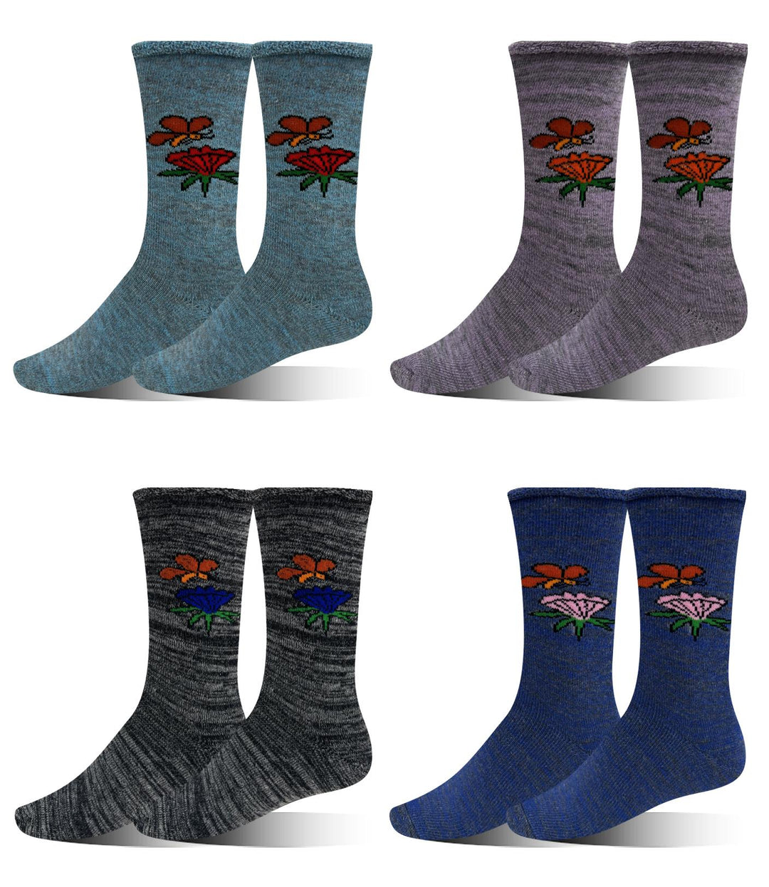 Women's thermal socks BUTTERFLY AND FLOWER SSW048 4 pairs