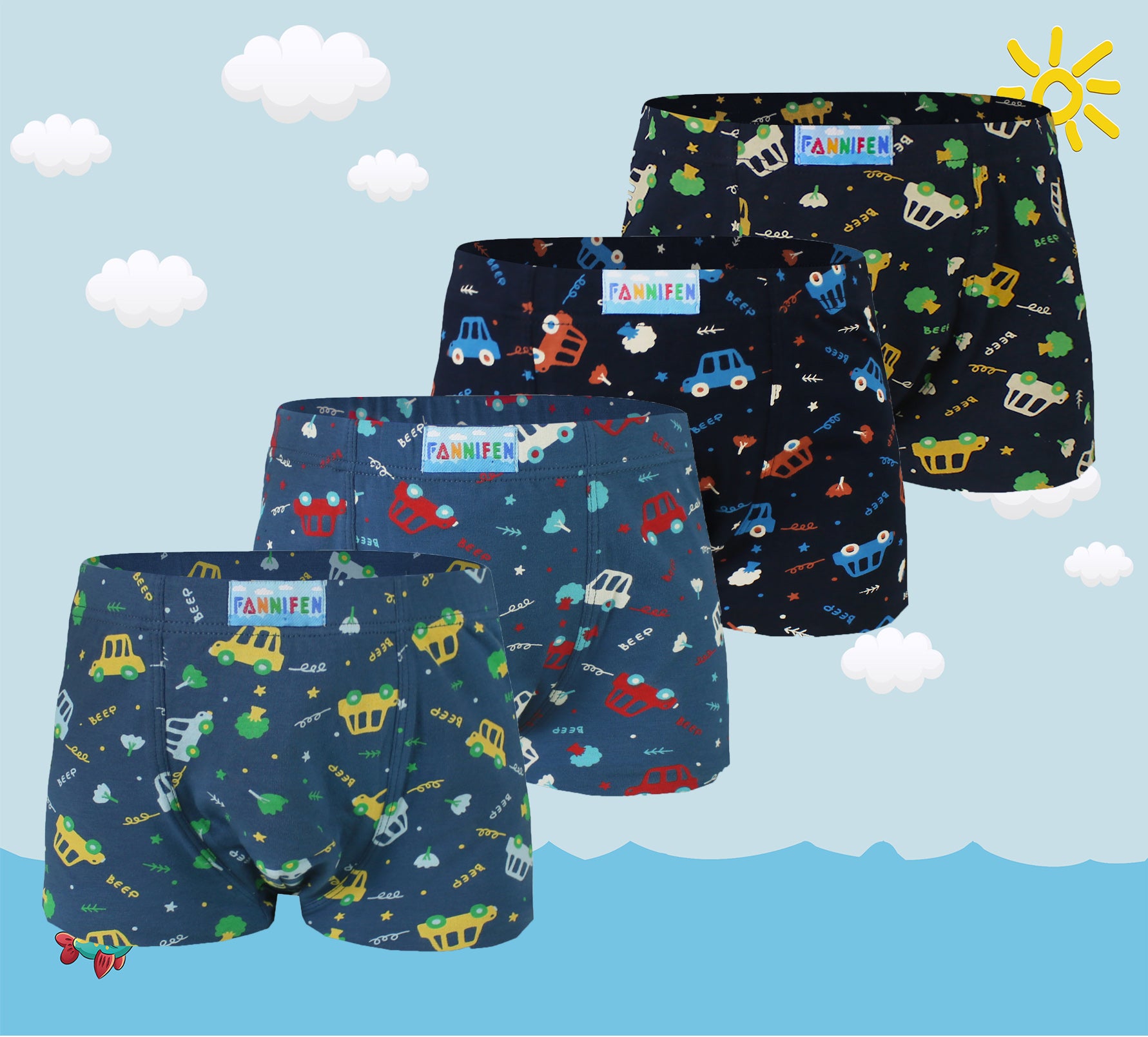 Boys' sport daily colorful boxer shorts Car PE-XQ5154 4 pieces per pack